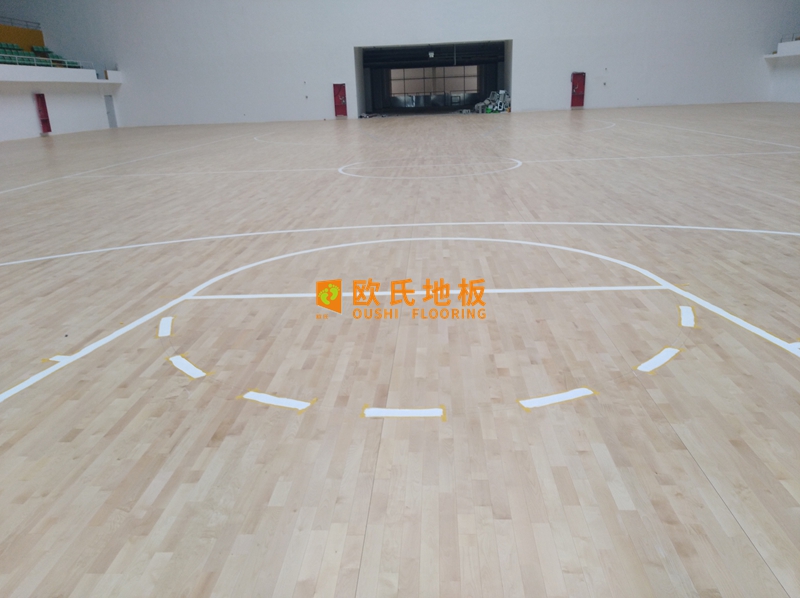 - 更常见的情况,通常以更大需求(一般是篮球场)为基准来设计地板尺寸,并用地板上的划线来兼容其他运动(如羽毛球、排球)。